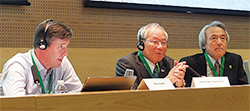 二十二日には,「抗菌薬耐性」「“One Health”のその他の側面」の二つのセッションが行われた.「セッション:“One Health”のその他の側面」では,ファン・ロドリゲス・サンディン スペイン医師会長を座長に,アラスデア・クック サリー大学教授,タイス・クウィケン エラスムス大学教授の講演に続き,「自然災害のマネジメント─備えと医師・獣医師“One Health”の連携」をテーマに,横倉会長及び日本獣医師会の蔵内勇夫会長が,それぞれ東日本大震災とその後の対応について講演を行った.
