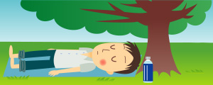 ・涼しい場所に運び、衣服をゆるめて寝かせる。