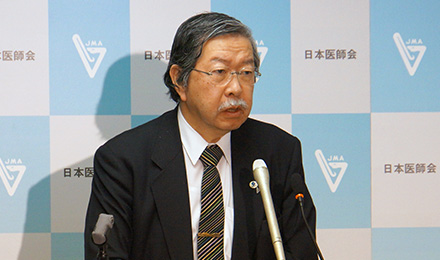 横倉義武会長は、地震発生直後から被災地の情報収集を行うとともに、JMATの派遣準備に着手し、塩崎恭久厚生労働大臣から医療支援の協力要請があったことも踏まえて、JMATの派遣を正式に決定したことを説明。