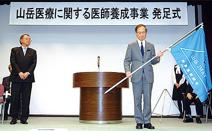 2月27日(土)に岐阜県医師会館で開催した「山岳医療に関する医師養成事業・山岳JMAT(山岳医療救護チーム)発足式」では、小林博岐阜県医師会長のあいさつ、堀部廉岐阜県医師会常務理事の事業説明後に、山岳JMAT隊旗が大橋宏重隊長(朝日大学歯学部附属村上記念病院長)に授与された。石井正三日本医師会常任理事、石原佳洋岐阜県健康福祉部長の来賓祝辞では、課題をいち早く取り上げたことへの感謝と本事業の意義が強調された。